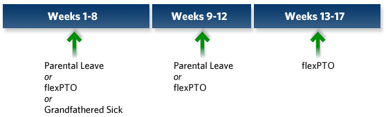 This timeline shows the types of paid leaves a father can use for the birth of a child. Please note:
